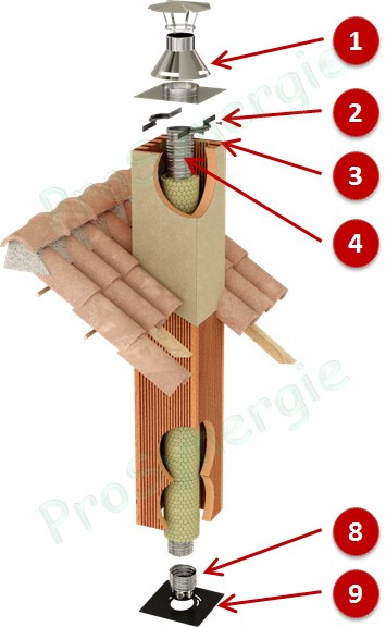 Pour un conduit de fumée en situation intérieure (Conduit de fumée existant en terre cuite + Tubage TEN LISS pré-isolé)