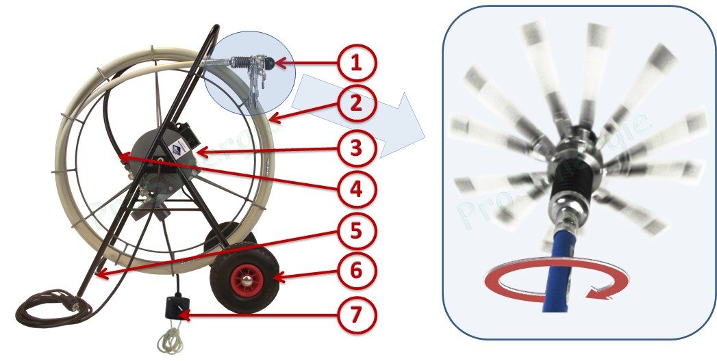 - Figure 1 n° (rep. 2) : Roue avec 15 m de câble rotatif
