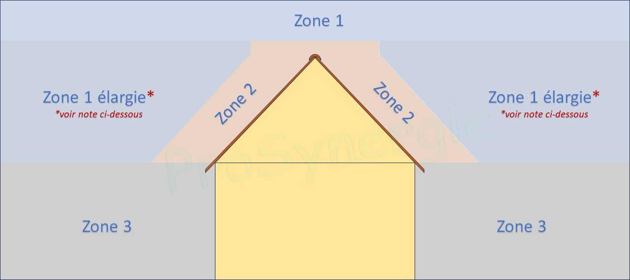 | Zone 1 | Zone située à une hauteur supérieure à 40 cm du faîtage |