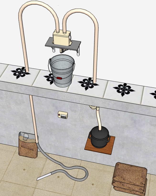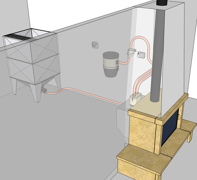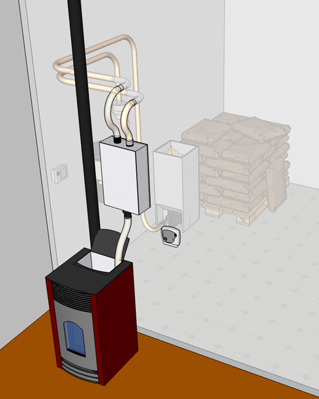 Solution parfois adoptée lorsqu'il est impossible de positionner le doseur sur le poêle ou en proximité immédiate.