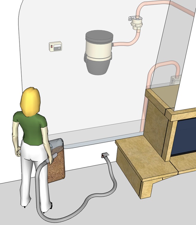 Un contrôleur spécifique pour les inserts est associé à une prise murale d’aspiration. La prise murale signale le besoin en pellet. Lorsque le flexible est inséré dans la prise, le contrôleur déclenche les cycles d’aspiration.