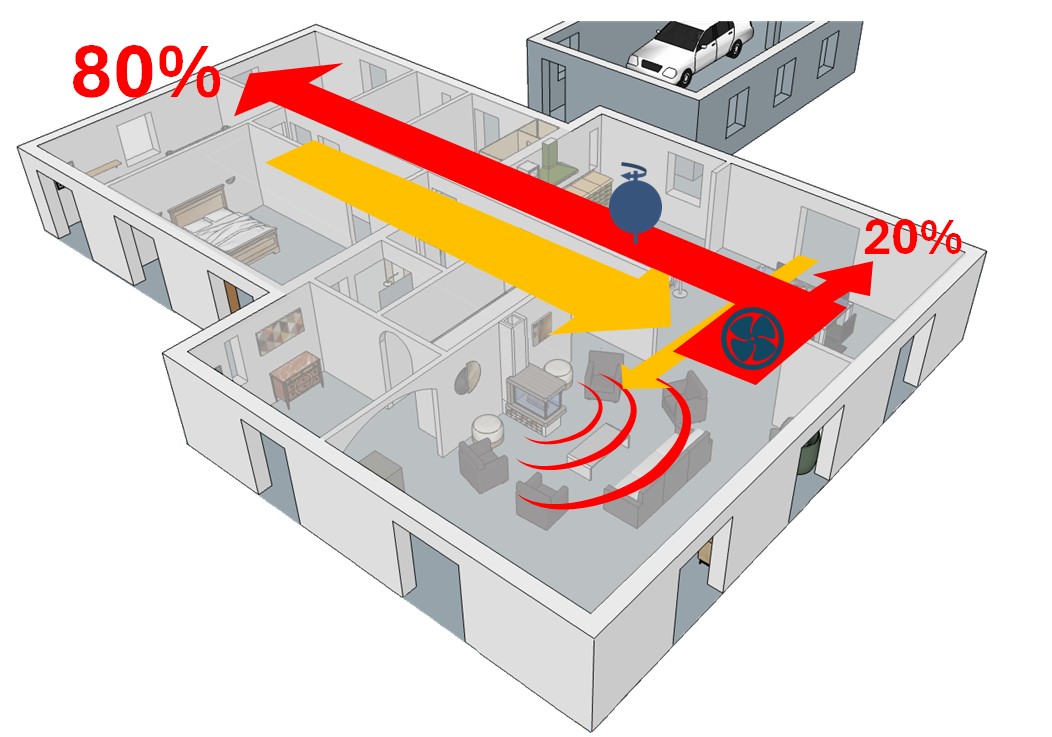 Pour favoriser l’homogénéisation de la chaleur dans les différentes pièces, il est possible de réaliser un brassage de l’air chaud avec un air frais prélevé dans une pièce ou un dégagement qui est naturellement plus frais.